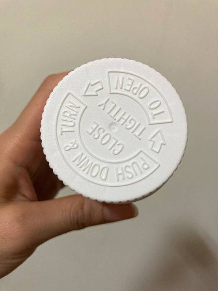 服用前需先將瓶蓋下壓再轉才可打開,