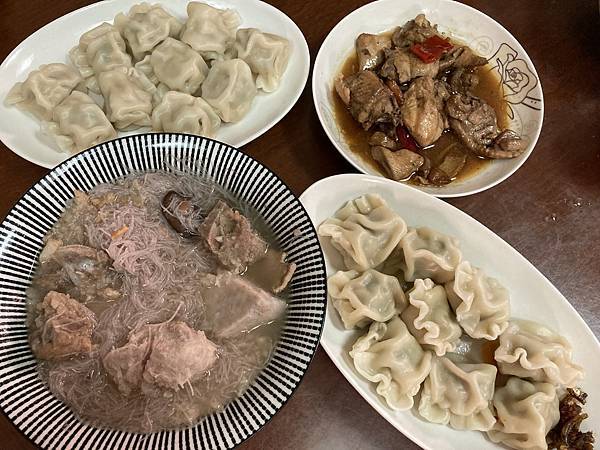 選了~蔥多多水餃、排骨酥芋頭米粉湯、台味三杯雞來解解饞先。